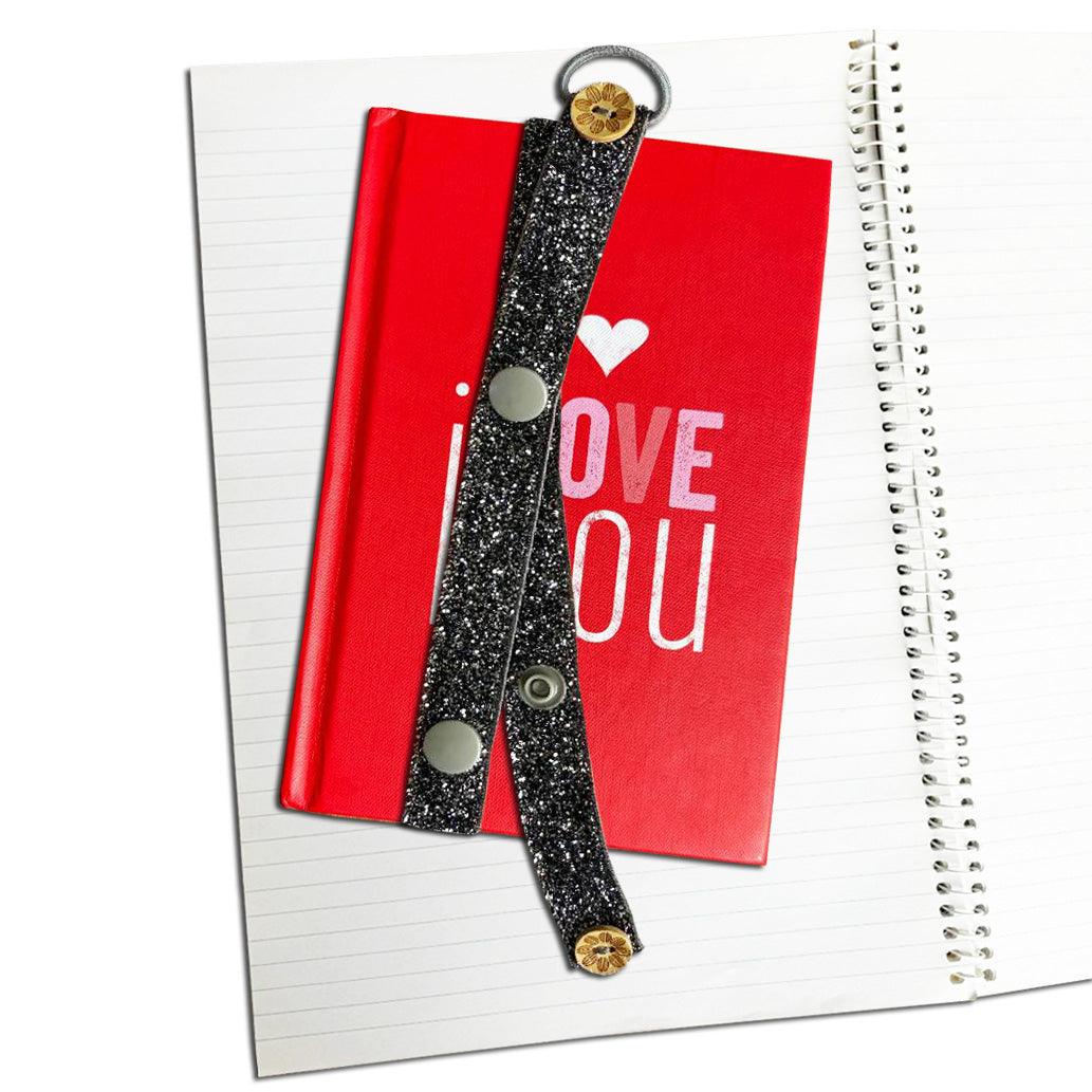 Note: You can adjust the length of the band by stretching the elastic or using the snap button for smaller books.