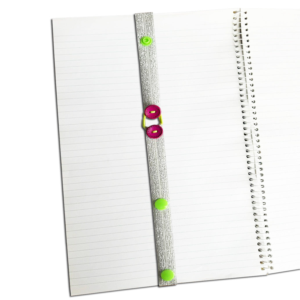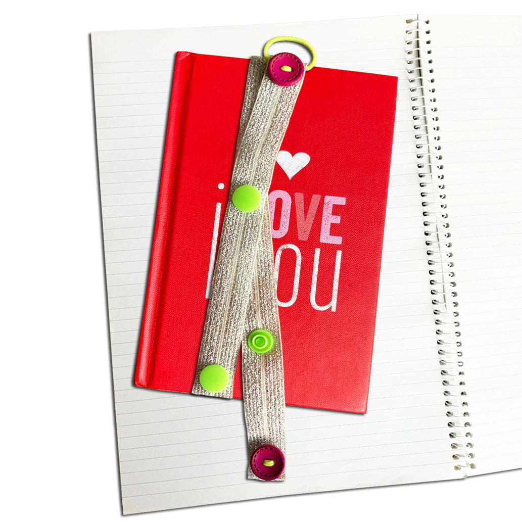 Note: You can adjust the length of the band by stretching the elastic or using the snap button for smaller books.