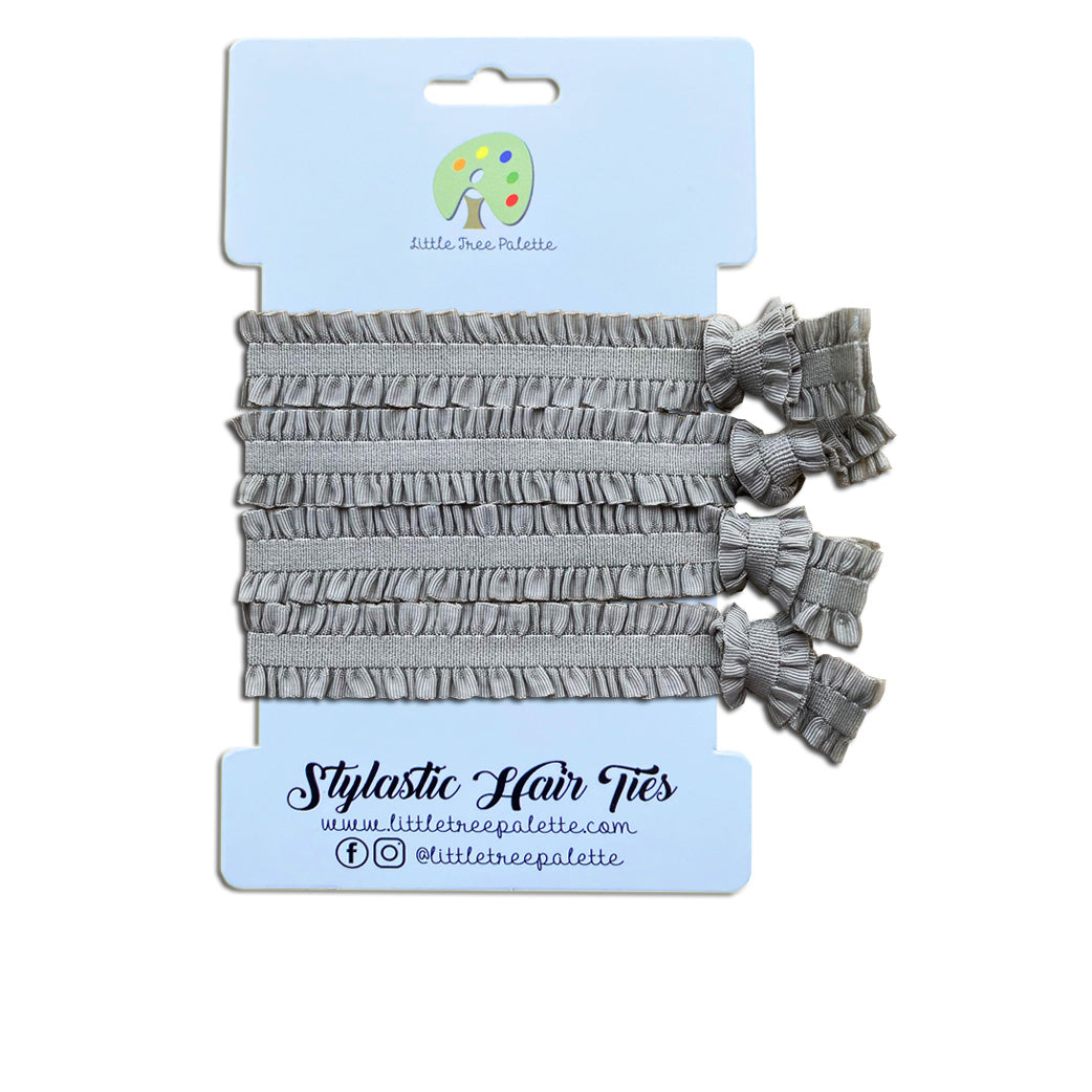 Our hair ties are sold in sets of 2, 3, 4, and 5. The item/s will be placed on a white/kraft card (depending on your preference). You can mix and match different colours/prints from the 9 Hair Tie collections. For example, include a Carrot Chevron and White Ruffle hair tie in one set.